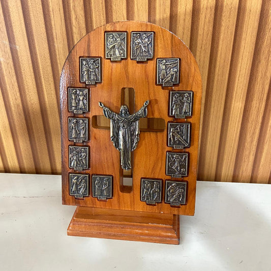 ADORNO DE MESA MADEIRA VIA CRUCIS METAL OURO VELHO 22,5CM (1 UNIDADE)