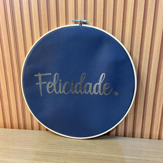 QUADRO DE TECIDO COM MOLDURA DE BAMBU FELICIDADE (1 UNIDADE)