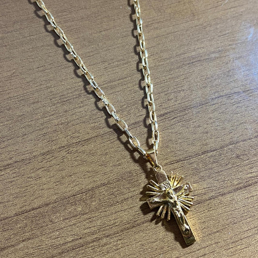 CORRENTE DOURADA COM CRUCIFIXO RAIADO ( 1 UNIDADE)