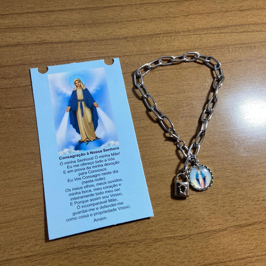 PULSEIRA CADEADO NOSSA SENHORA DAS GRAÇAS MEDALHA RESINADA NA CARTELA (3 UNIDADES)