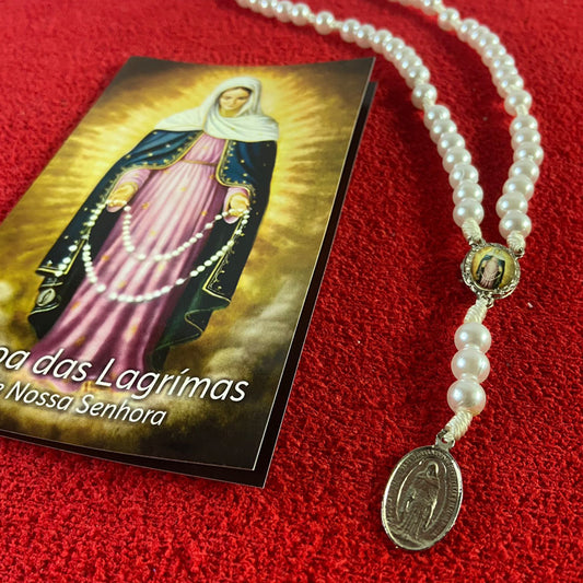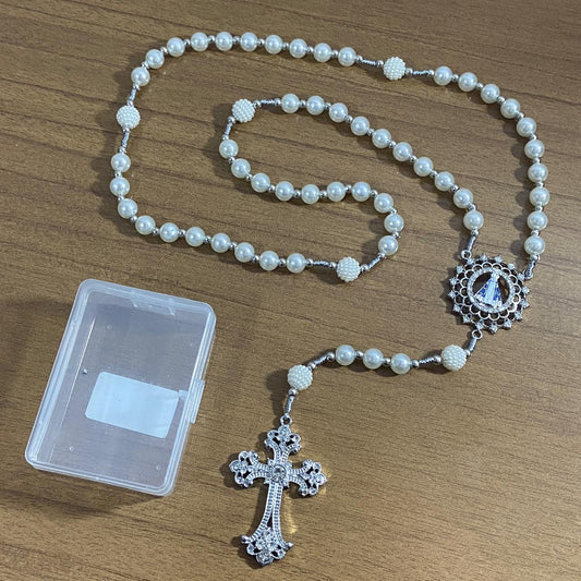 TERÇO DE NOIVA PRATEADO PÉROLA NOSSA SENHORA APARECIDA 08MM (1 UNIDADE)