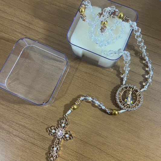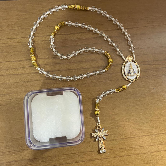 TERÇO DE NOIVA CRISTAL NOSSA SENHORA APARECIDA MOD10 10MM (1 UNIDADE)