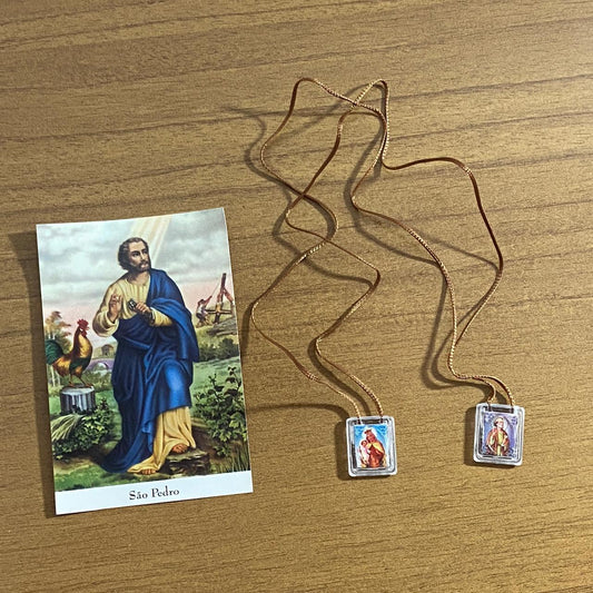 ESCAPULÁRIO CORDINHA NOSSA SENHORA DO CARMO E SÃO PEDRO (12 UNIDADES)