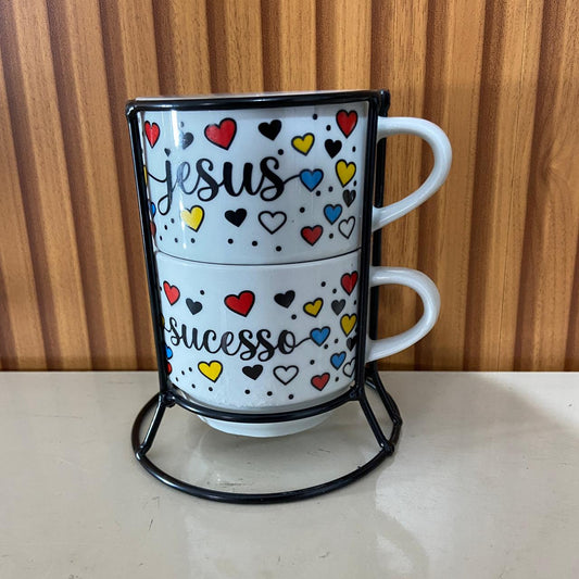 XÍCARA BRANCA EMPILHÁVEL JESUS E SUCESSO ( 2 UNIDADES)