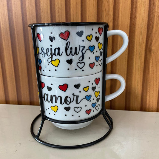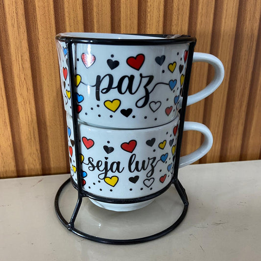 XÍCARA BRANCA EMPILHÁVEL SEJA LUZ E AMOR ( 2 UNIDADES)