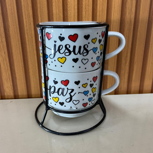 XÍCARA BRANCA EMPILHÁVEL JESUS E PAZ ( 2 UNIDADES)