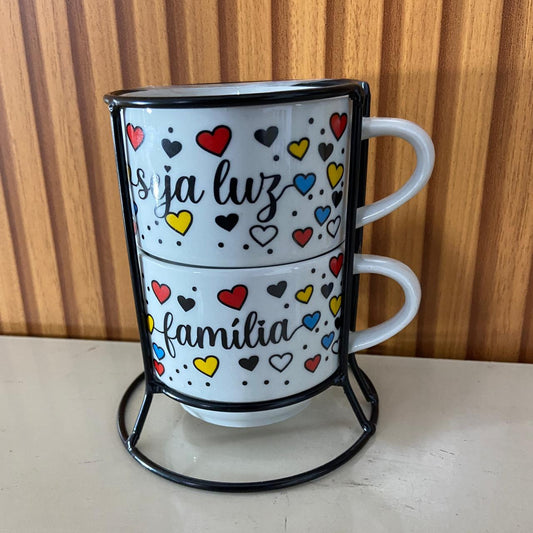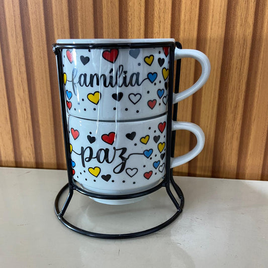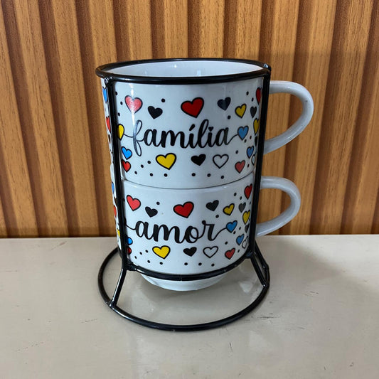 XÍCARA BRANCA EMPILHÁVEL FAMÍLIA E AMOR ( 2 UNIDADES)