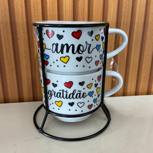 XÍCARA BRANCA EMPILHÁVEL AMOR E GRATIDÃO ( 2 UNIDADES)