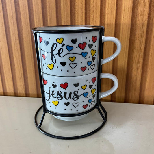 XÍCARA BRANCA EMPILHÁVEL FÉ E JESUS ( 2 UNIDADES)