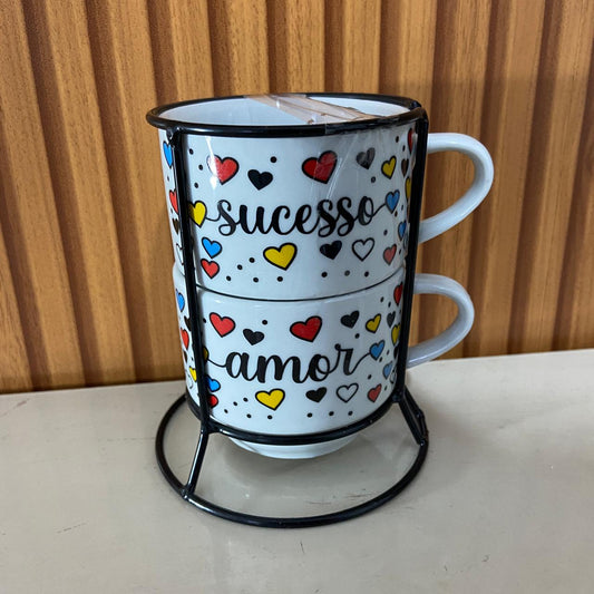 XÍCARA BRANCA EMPILHÁVEL SUCESSO E AMOR ( 2 UNIDADES)
