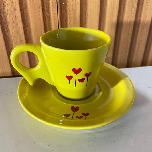XÍCARA COM PIRES FLOR AMARELA 100ML (1 UNIDADE)