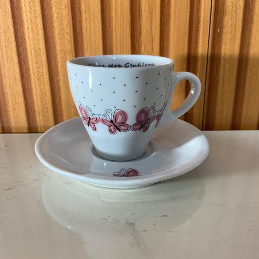 XÍCARA COM PIRES BORBOLETA ROSA 120ML (1 UNIDADE)