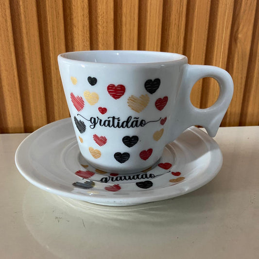 XÍCARA COM PIRES GRATIDÃO 200ML (1 UNIDADE)