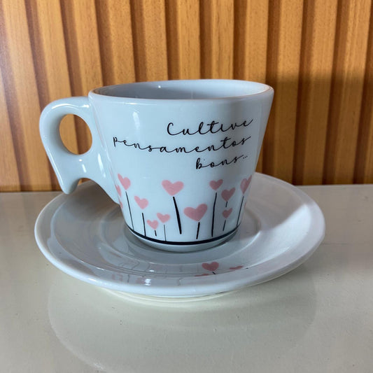 XÍCARA COM PIRES CULTIVE PENSAMENTO BONS 200ML (1 UNIDADE)
