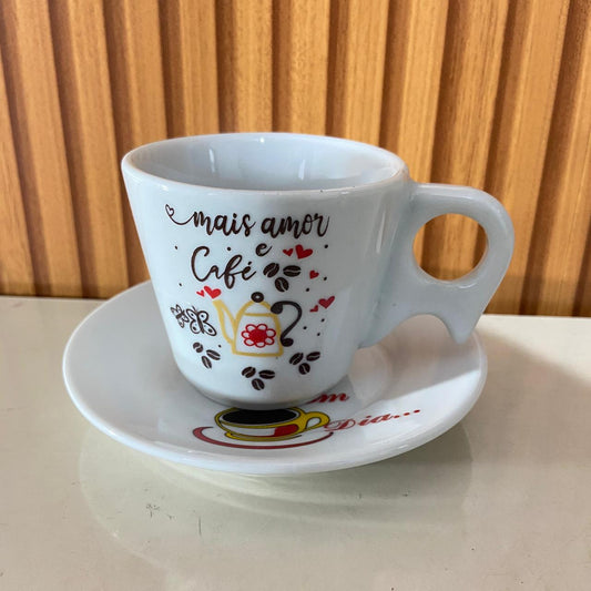 XÍCARA COM PIRES MAIS AMOR E CAFÉ 200ML (1 UNIDADE)