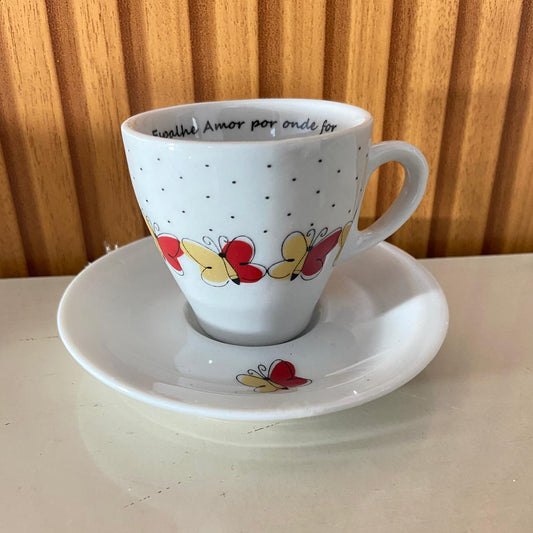 XÍCARA COM PIRES BORBOLETA VERMELHA E DOURADA 120ML (1 UNIDADE)