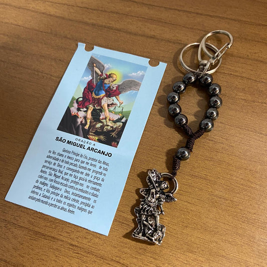 CHAVEIRO DEZENA HEMATITA COM MOSQUETE SÃO MIGUEL ARCANJO (3 UNIDADES)