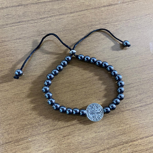 PULSEIRA REGULÁVEL HEMATITA MEDALHA SÃO BENTO (12 UNIDADES)