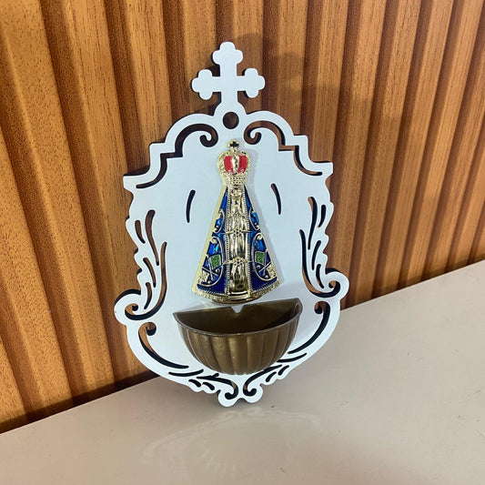 PORTA AGUA BENTA MDF BRANCO NOSSA SENHORA APARECIDA EM RELEVO 18,5CM (1 UNIDADE)