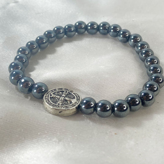 PULSEIRA HEMATITA MEDALHA SÃO BENTO MOD04 (12 UNIDADES)