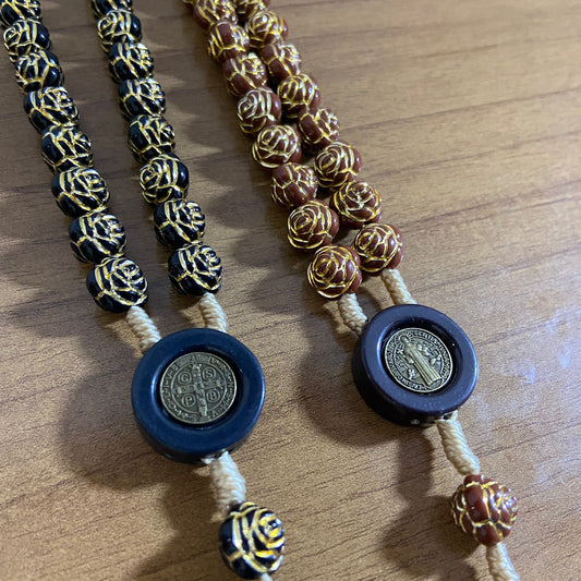 TERÇO CONTAS DE ROSAS SÃO BENTO CORES SORTIDAS 10MM ( 3 UNIDADE)