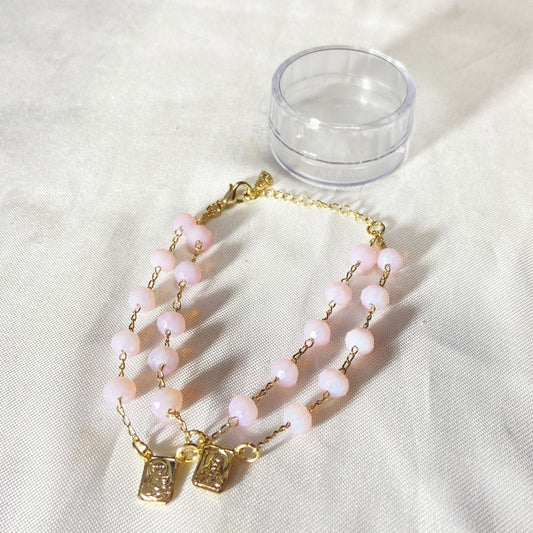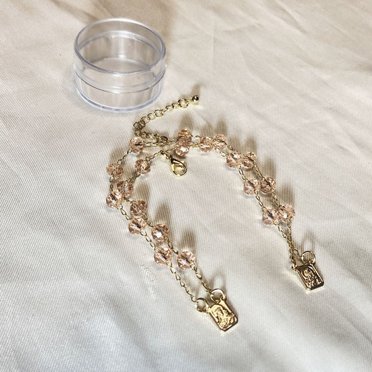 PULSEIRA ESCAPULARIO CRISTAL ROSA TRANSPARENTE (3 UNIDADES)