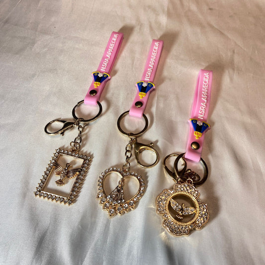 CHAVEIRO LUXO DIVINO ESPÍRITO SANTO COM FITA SILICONE ROSA MODELOS SORTIDOS (6 UNIDADES)