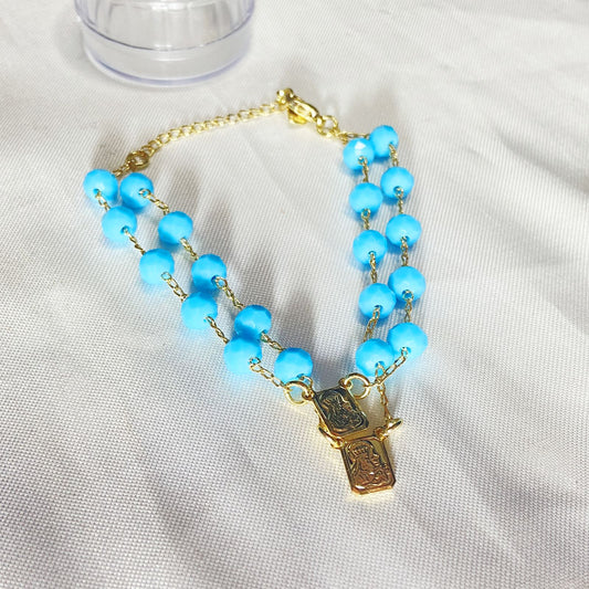PULSEIRA ESCAPULARIO CRISTAL AZUL CLARO (3 UNIDADES)