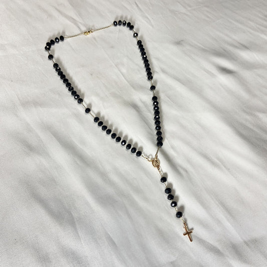 TERÇO DE NOIVA CRISTAL PRETO NOSSA SENHORA APARECIDA 08MM (1 UNIDADE)