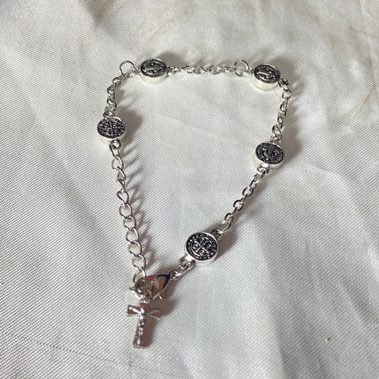 PULSEIRA PRATEADA MEDALHA SÃO BENTO (6 UNIDADES)