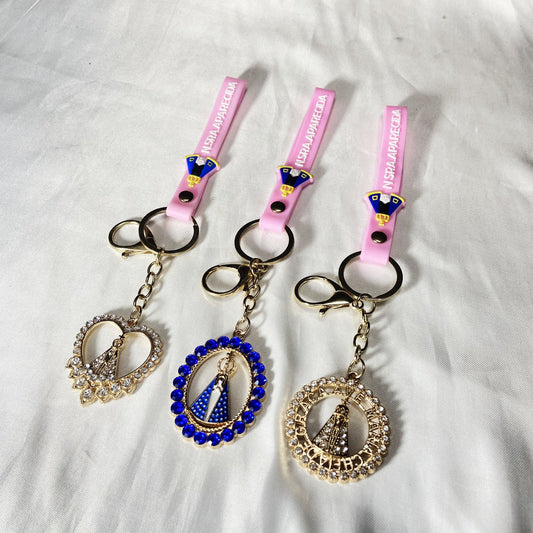 CHAVEIRO LUXO NOSSA SENHORA APARECIDA COM FITA SILICONE ROSA MODELOS SORTIDOS (6 UNIDADES)