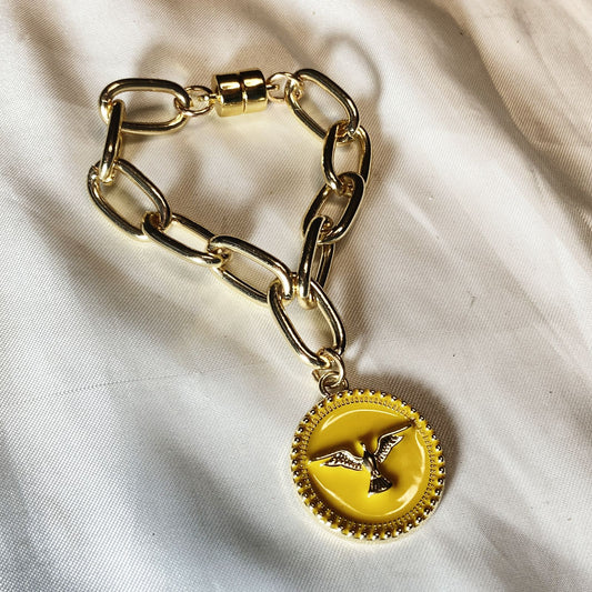 PULSEIRA DOURADA DIVINO ESPÍRITO SANTO RESINADO AMARELO (3 UNIDADES)