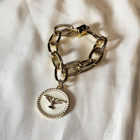 PULSEIRA DOURADA DIVINO ESPÍRITO SANTO RESINADO BRANCO (3 UNIDADES)