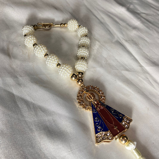 DEZENA PARA CARRO NOSSA SENHORA APARECIDA AMORA BRANCA MOD2 12MM (3 UNIDADES)