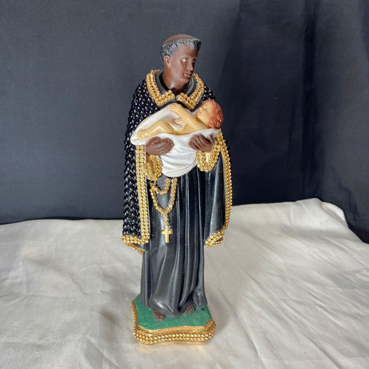 IMAGEM DE GESSO COM PÉROLA SÃO BENEDITO 27CM (1 UNIDADE)