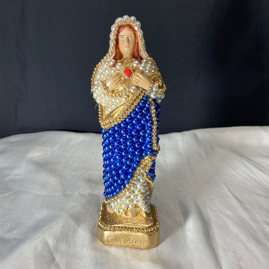IMAGEM DE GESSO COM PÉROLA IMACULADO CORAÇÃO DE MARIA 20CM (1 UNIDADE)