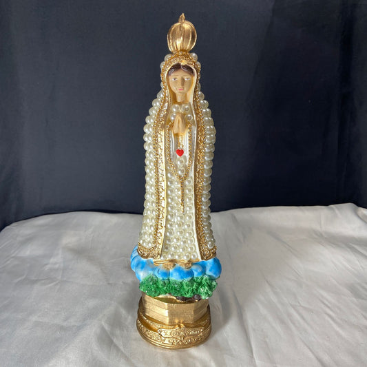 IMAGEM DE GESSO COM PÉROLA NOSSA SENHORA DE FÁTIMA 20CM (1 UNIDADE)