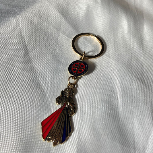 CHAVEIRO DOURADO JESUS MISERICORDIOSO COM MEDALHA SÃO BENTO (6UNIDADES)
