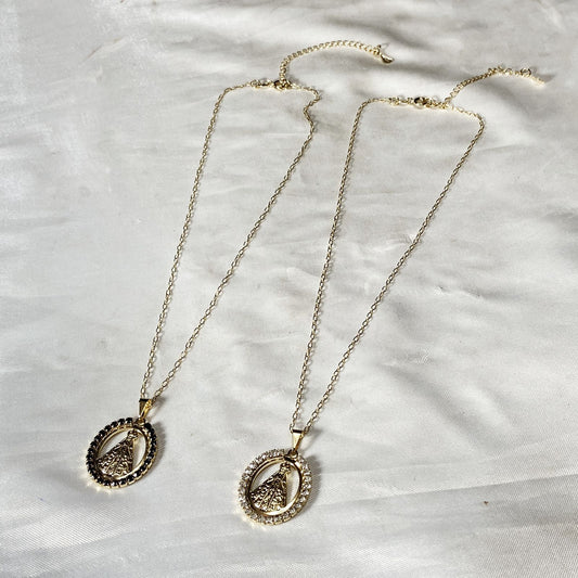 CORRENTE DOURADA OVAL NOSSA SENHORA APARECIDA COM STRASS CORES SORTIDAS M (3 UNIDADES)