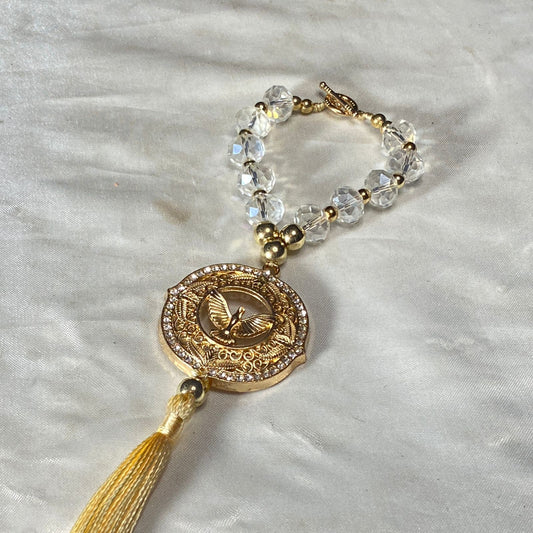 DEZENA PARA CARRO CRISTAL DIVINO ESPÍRITO SANTO DOURADO 10MM (3 UNIDADES)