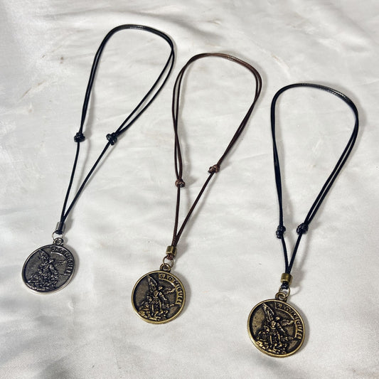 CORDÃO ENCERADO REGULÁVEL MEDALHA DE SÃO MIGUEL ARCANJO MODELOS SORTIDOS (3 UNIDADES)
