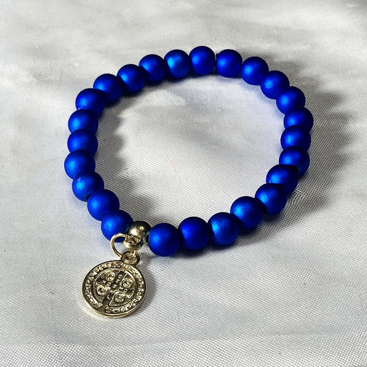 PULSEIRA PÉROLA AZUL MEDALHA SÃO BENTO (03 UNIDADES)