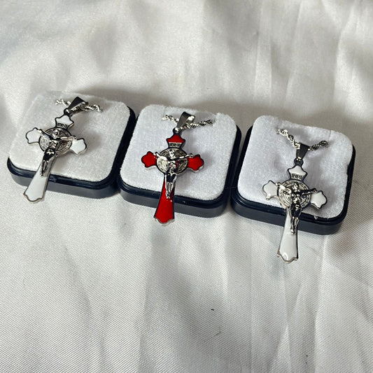 CORRENTE COM CRUCIFIXO MEDALHA SÃO BENTO CORES SORTIDAS ( 3 UNIDADES)
