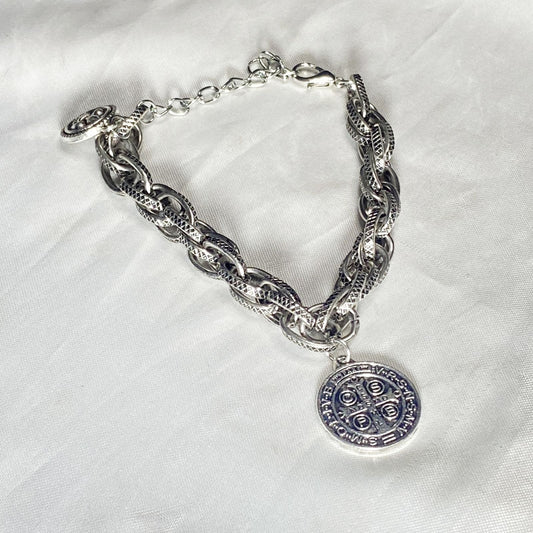 PULSEIRA PRATEADA MEDALHA SÃO BENTO (1 UNIDADE)