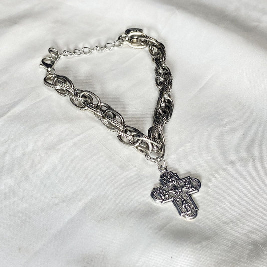 PULSEIRA PRATEADA MEDALHA CRUZ TODOS OS SANTOS (1 UNIDADE)