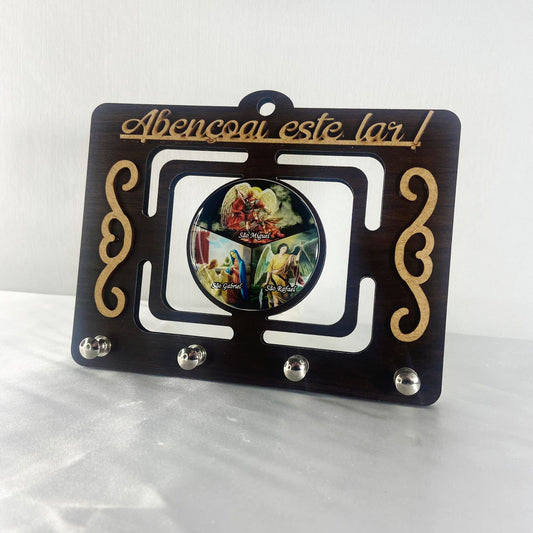 PORTA CHAVE VAZADO RESINADO PROTEÇÃO DOS ARCANJOS 14CM (1 UNIDADE)