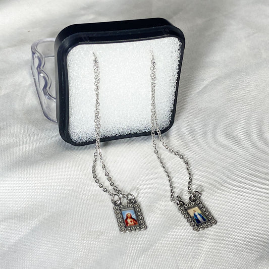ESCAPULÁRIO INOX RESINADO DETALHADO SAGRADO CORAÇÃO DE JESUS E NOSSA SENHORA DAS GRAÇAS P (6 UNIDADES)