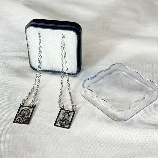 ESCAPULÁRIO INOX LASER VAZADO SAGRADO CORAÇÃO DE JESUS E SANTA RITA DE CÁSSIA (6 UNIDADES)