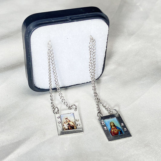 ESCAPULÁRIO INOX RESINADO DETALHADO SAGRADO CORAÇÃO DE JESUS E NOSSA SENHORA DO CARMO MOD2 (6 UNIDADES)