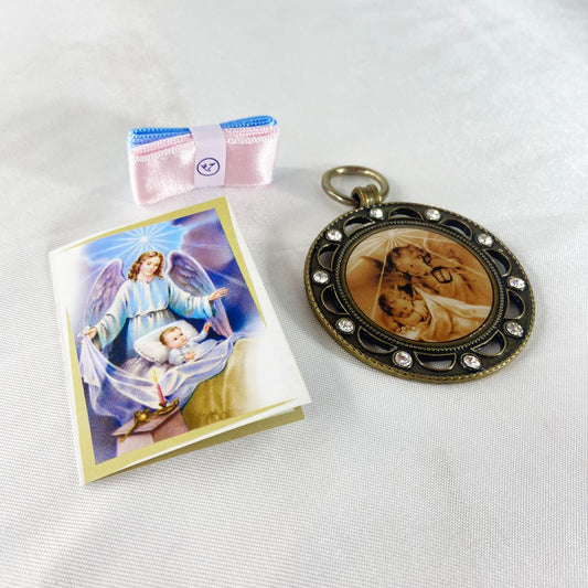 MEDALHÃO DE BERÇO METAL OURO VELHO ANJO DA GUARDA (1 UNIDADE)